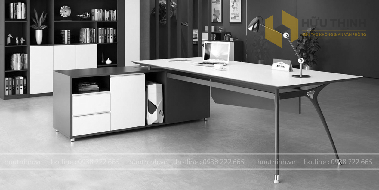 Bàn lãnh đạo thường được làm từ chất liệu cao cấp như Acrylic, gỗ Veneer, gỗ công nghiệp và được trang bị các phụ kiện đi kèm nhằm phục vụ nhu cầu làm việc cũng như tạo sự sang trọng và hiện đại.