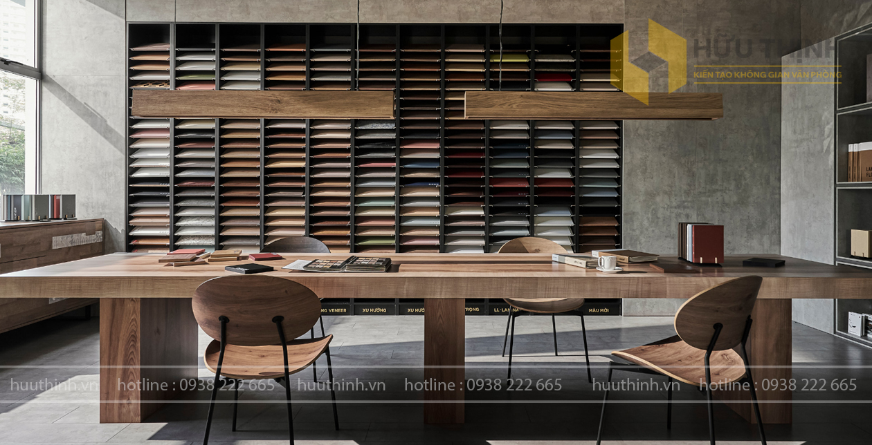 Gỗ tự nhiên là chất liệu cao cấp, mang đến vẻ đẹp sang trọng và tinh tế cho không gian văn phòng. Gỗ tự nhiên có nhiều loại, bao gồm gỗ sồi, gỗ óc chó, gỗ xoan đào,... Mỗi loại gỗ có những đặc điểm và màu sắc riêng. Tuy nhiên gỗ tự nhiên có giá thành khá cao và vì thế rất ít các công ty doanh nghiệp lựa chọn chất liệu này cho các sản phẩm nội thất văn phòng.