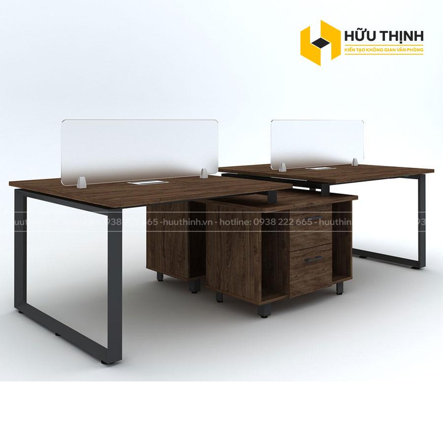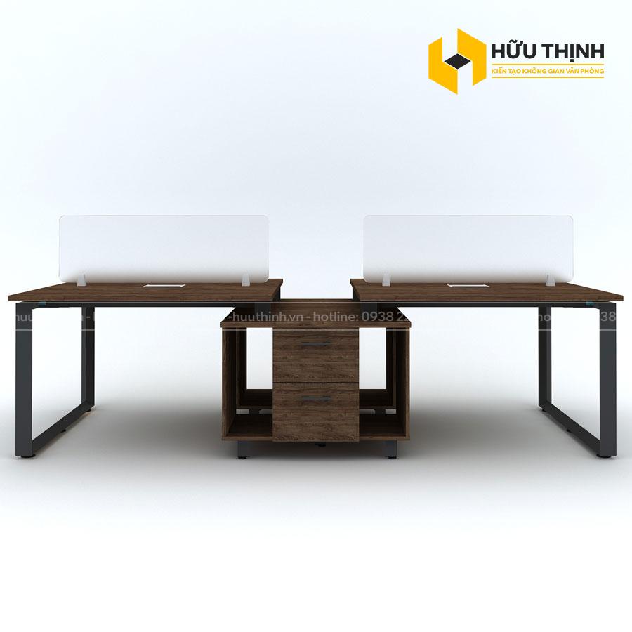 Module bàn 4 chỗ ngồi có hộc tủ được thiết kế theo phong cách hiện đại với nhiều tiện ích giúp thuận tiện trong quá trình sử dụng như: Hộc để hồ sơ, Kệ để CPU, hộp luồn dây điện mạng trên mặt bàn, vách ngăn kính,...
